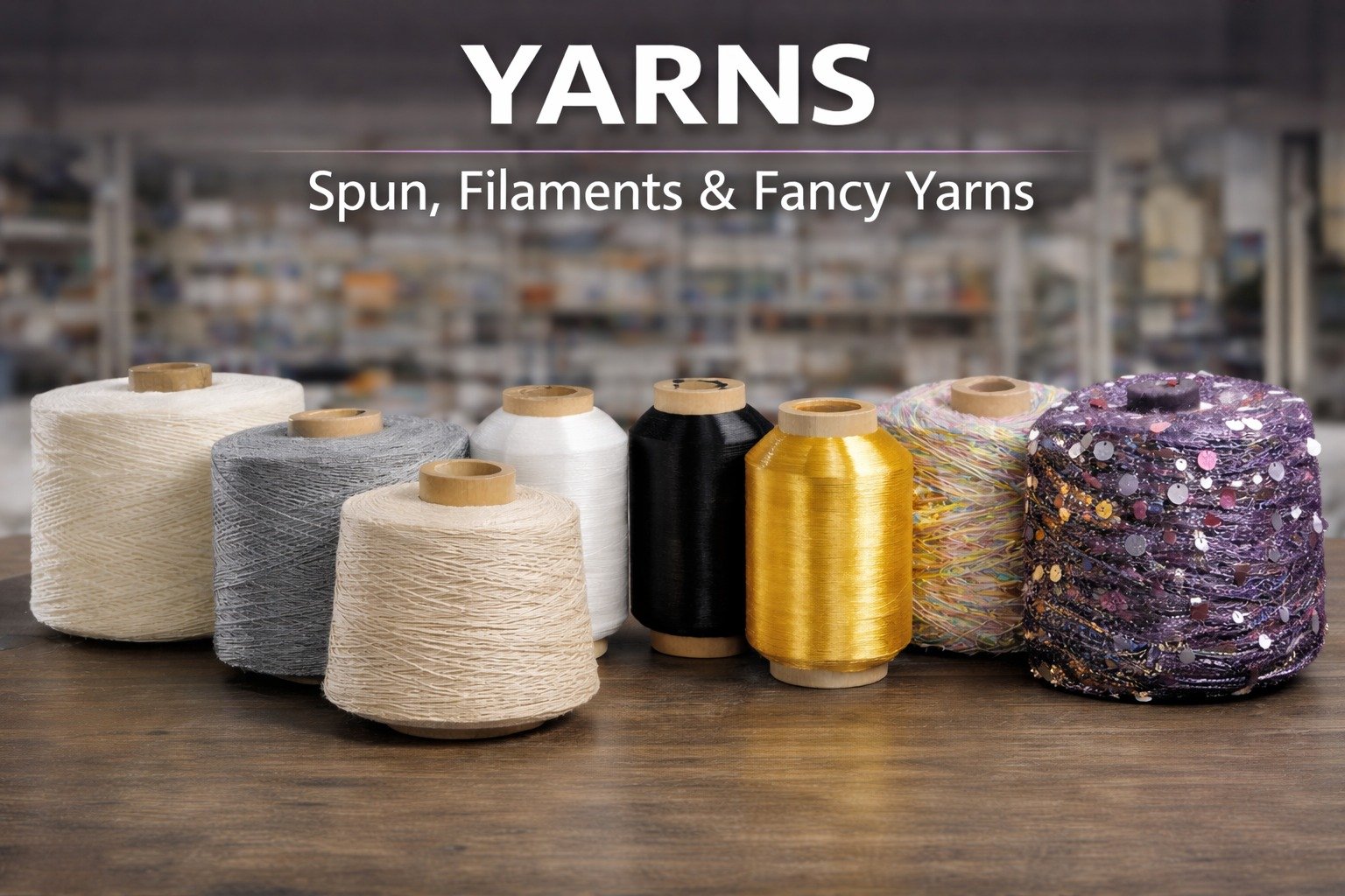 A complete range of Yarns - Spun, Filaments and Fancy.